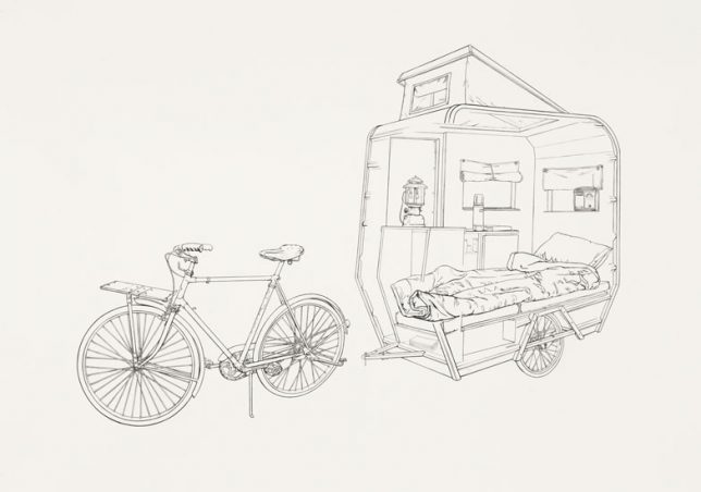 Choosing to ride a bike instead of driving a car doesn’t have to mean foregoing the convenience of a camper trailer, though such options may require especially clever construction (not to mention physical endurance) in place of motorized assistance (or at least: an electric assist bicycle).
